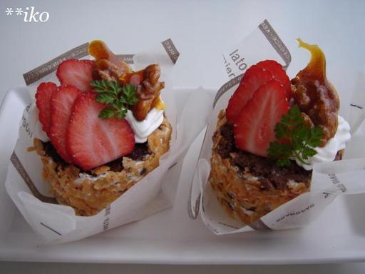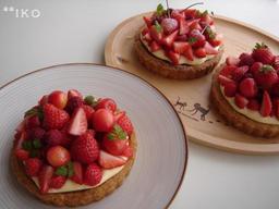 今の季節、お店にはフルーツがいっぱいですね。 イチゴもまだあって、大好きなさくらんぼもやっとお手頃価格。 いい季節です。 さくらんぼとイチゴとラズベリーのタルトです。 ラズベリーは冷凍物ですが。 赤い実はなんだかわくわくします。 |