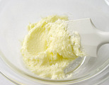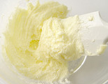 Stir in beaten egg, a little at a time, and blend well. Then mix in almond powder and rum, in that order. (Photo #2)