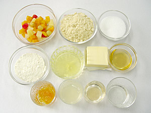 Arrange canned fruit cocktail pieces on top. Make sure the fruits are set in the batter as in the photo. (Photo #3)