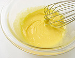 Stir in the hot milk to the egg yolk mixture, a little at a time, then add flour and blend well. Transfer the mixture into a saucepan and stir over low heat.
