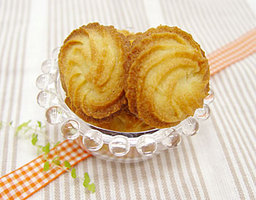 Swiss style cookies, flavored with vanilla essence. Roll the dough into balls using your hands. Enjoy the mild taste with a rich vanilla flavor.