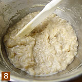 に加えて、ゴムベラで混ぜ合わせます。この時練らないように注意します。