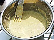 | まずは生地づくりから・・ とにかく材料を全部混ぜ合わせちゃいます。 |