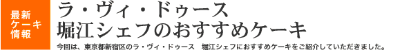 ラ・ヴィ・ドゥースは都営新宿線曙町駅より徒歩5分の人気店。そのやさしい味わいのケーキとシェフの人柄で、ケーキピアスタッフの中にもファンの多いお店です。その堀江シェフからご紹介いただいたのは、9月に入ってもまだちょっと暑いかな〜、という今の時期にぴったりの2品です。